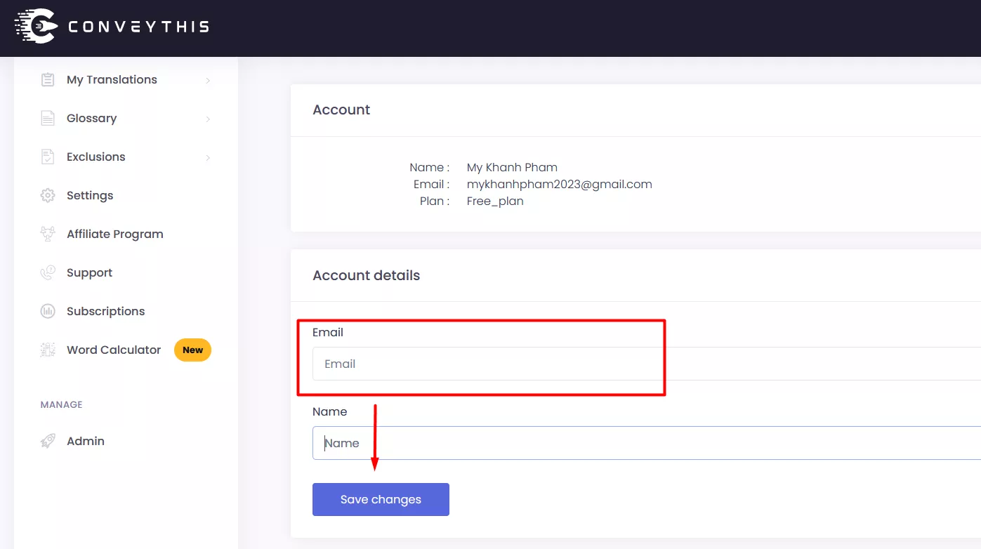 From your ConveyThis Dashboard, you also have access to the Glossary: